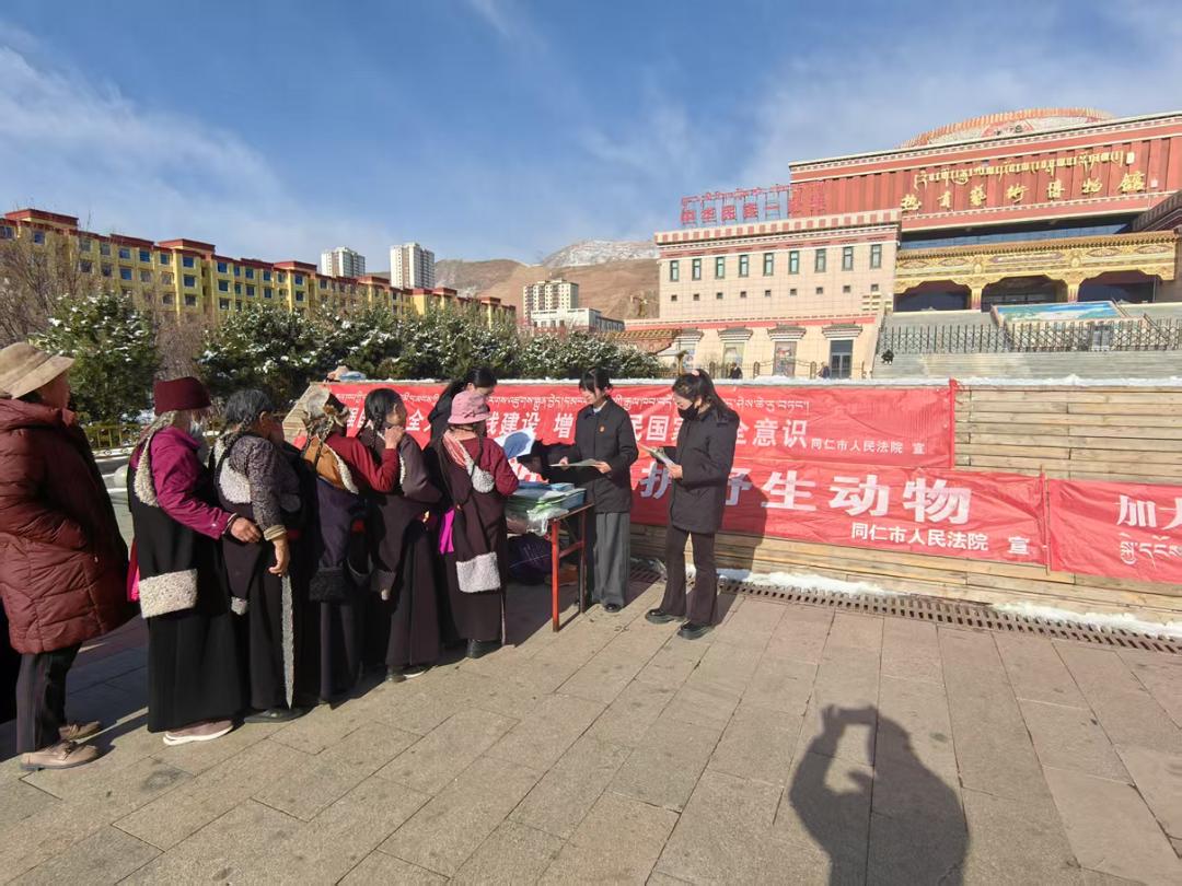 和煦的春风中,黄南中院联合同仁法院将普法课堂搬进同仁市广场和保安镇赛加村,通过发放宣传册及藏汉双语授课等方式向当地牧民群众普及身边常见的野生动植物种类、危害野生动植物对生态环境造成的影响,让群众更加了解保护野生动植物的意义,引导群众自觉参与到野生动植物资源保护的行动中来,共建共享人与自然和谐共生的生态画卷。