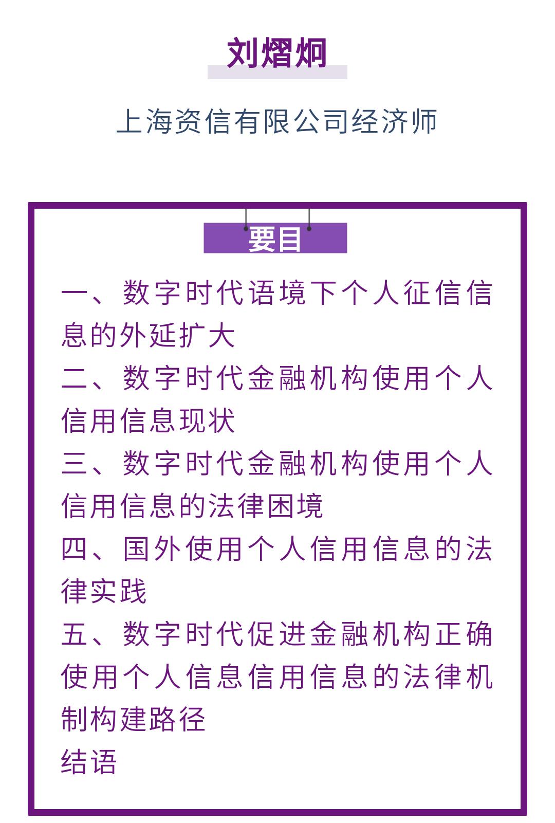 原标题:《刘熠炯|数字时代语境下金融机构使用个人信用信息的法律困境及其突破路径》