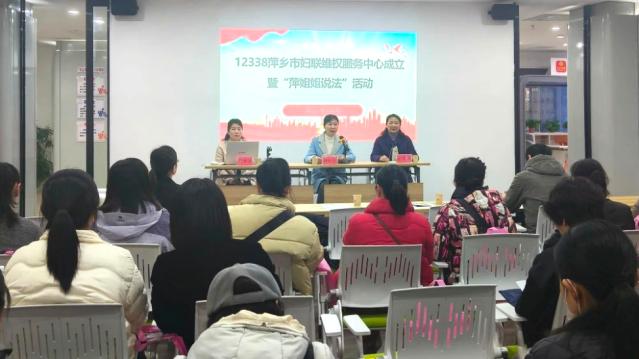 萍乡市成立12338萍乡市妇联维权服务中心,该中心由市妇联、司法局、公安局、检察院、法院、社工部、组织部等多部门共建,面向全市妇女儿童和家庭提供综合维权关爱服务。活动当天,维权中心为社区群众开展了“萍姐姐说法”活动,邀请上栗县人民法院孙小琼法官专题宣讲《民法典》婚姻家庭最新司法解释。维权服务中心还设置了“巾帼暖心角”,为有应急需要的新就业群体女性提供防寒消暑、创可贴等应急日常用品,给予女性朋友温暖贴心的关怀。