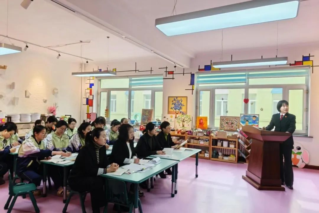 为进一步加强幼儿园教职工法治意识,全面深入了解相关法律法规要求,规范教职工的从教、从业行为,保障幼儿的相关权益。近日,四平市铁东区人民法院曲胜法官走进四平市铁东实验幼儿园开展了一场“学法用法、守护幼童”的专题讲座,重点解读了《中华人民共和国学前教育法》。