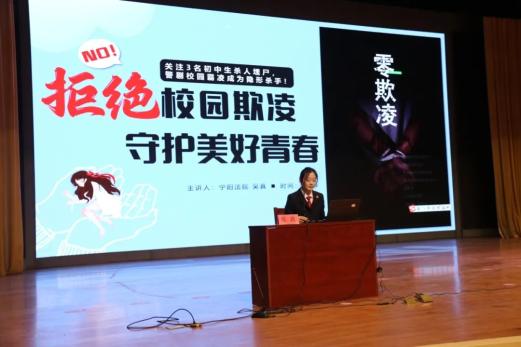 八仙桥法庭兼职“法治班主任”干警吴真来到县实验中学“070勇敢者行动”法治报告会现场,围绕“拒绝校园欺凌,守护美好青春”主题,通过“法律解读+案例剖析+互动问答”形式,为师生们讲述了如何反对校园欺凌、面对校园欺凌应该怎么做,普及了及时保存聊天记录、就医材料、寻求目击者作证等遭受校园欺凌的实用取证技巧,并提醒大家遭遇校园欺凌要冷静处理,将人身安全放在第一位,及时寻求帮助。