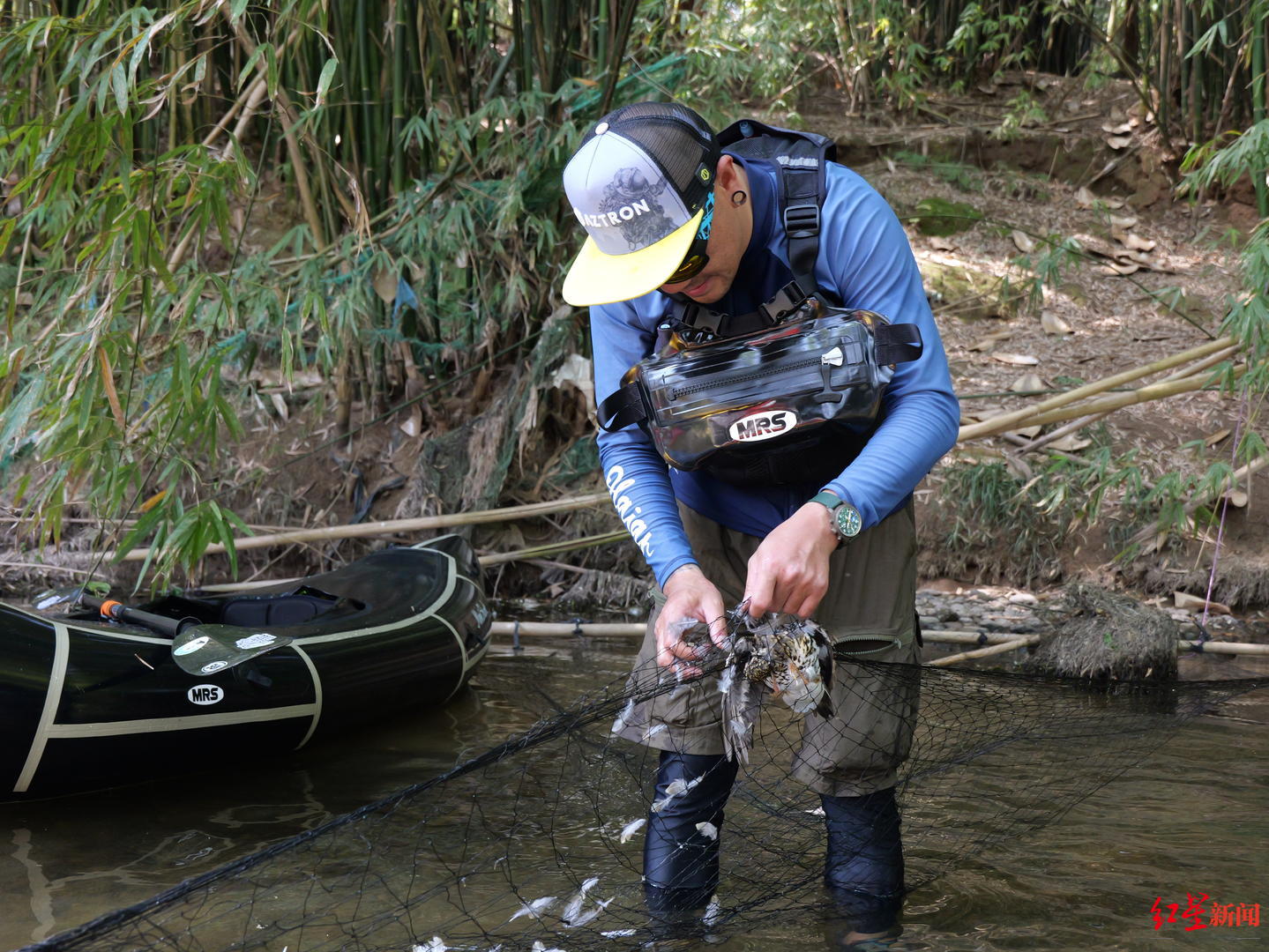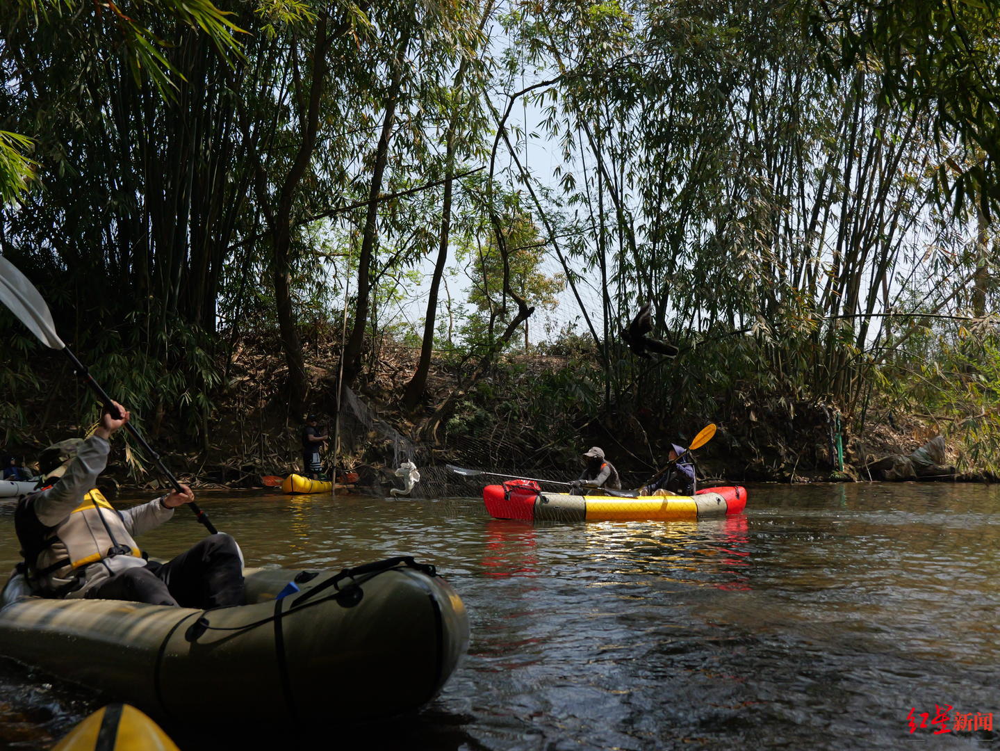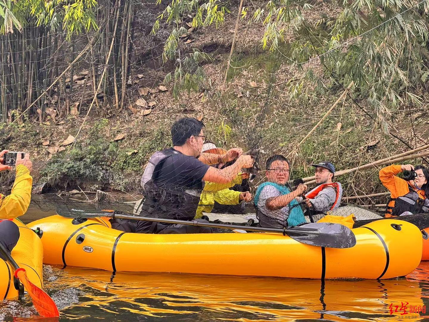 26日下午,红星新闻记者来到了鹿溪河段,刘磊一行刚把网阵拆除下来。随着他们的到来,也吸引了一些当地居民的围观。红星新闻记者询问当地居民时,他们纷纷表示不知情。