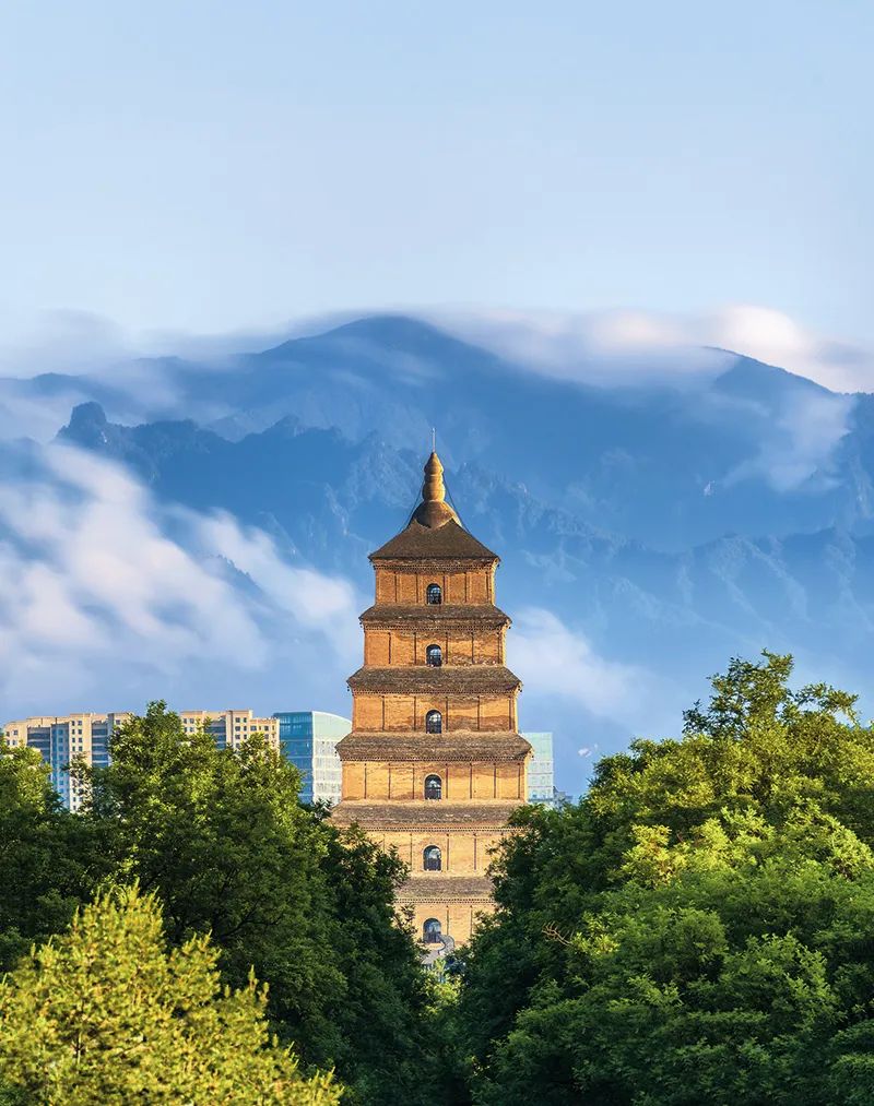 秦岭主脊在西安境内逶迤两三千米高度,形成国内罕见的城市垂直景观带,让西安成为解读中国南北过渡带生态密码的天然实验室。图为从巍然屹立了近1400年的唐代大雁塔眺望云横秦岭景色(视觉中国 供图)