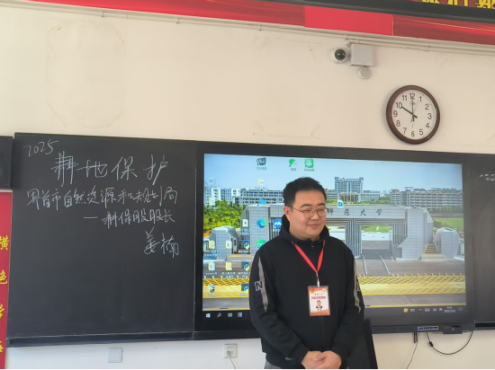 课上,姜楠首先以微视频及PPT的形式为学生详细介绍耕地保护相关情况及耕地用途管制相关政策,接着采用问答抢答形式,向同学们科普自然资源常识,如农用地不同种类和不同用途,重点强调乱占耕地建房的违法性质和危害性,学生就如何正确使用耕地提出疑问,进行互动解答。现场活动氛围热烈,互动积极。