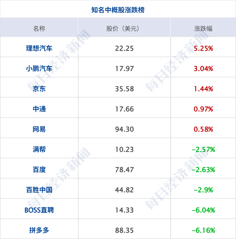 美股三大指数集体收跌,纳指跌4.31%,标普500指数跌3.46%,道指跌1014.79点,跌幅2.5%;大型科技股集体下挫,特斯拉跌超7%,Meta跌超6%,英伟达、亚马逊跌超5%,苹果跌超4%,谷歌跌超3%,微软跌超2%。纳斯达克中国金龙指数跌1.14%,中概股多数走低,拼多多、富途控股跌超6%,老虎证券跌超4%,爱奇艺跌超3%,百度跌超2%,阿里巴巴跌0.57%,理想汽车涨超5%,小鹏汽车涨超3%。