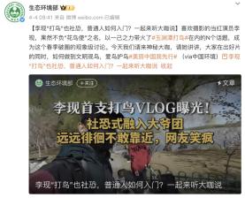李现凭一己之力带火了“打鸟”,后生态环境部官方发文点赞其不负“花鸟使”之名并呼吁大家文明观鸟,爱鸟护鸟。