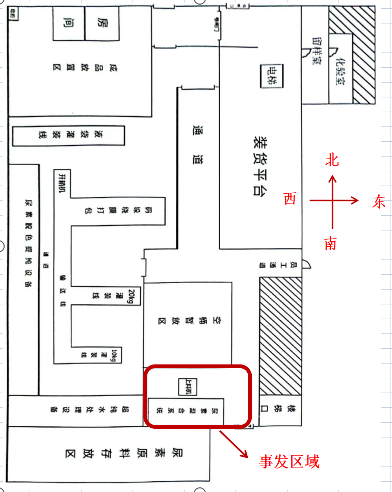 (四)事故现场情况 1.事故位置情况事故发生地点位于大亚湾开发区澳头街道惠州市加泽科技有限公司(见图1)尿素混合车间操作平台(见图2)。