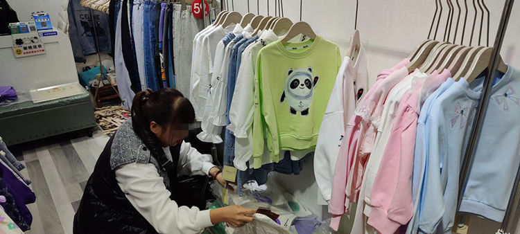 商户未取得北京冬奥会标志权利人授权许可,销售印有“冰墩墩”图案的衣服。资料图片