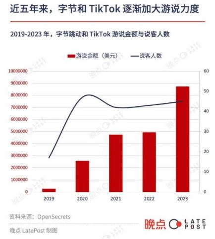 为了消解美国政府对其的不信任情绪,TikTok在过去五年里显著加大了游说力度,积极聘请前美国政府雇员为其发声。根据政务透明机构OpenSecrets的统计数据,去年字节跳动和TikTok用于游说的资金高达874万美元,这一数字是2020年的三倍多。