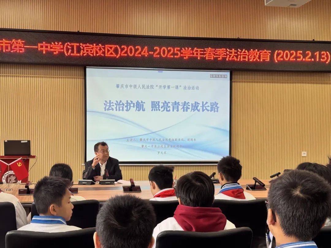 2月13日,肇庆一中法治副校长,肇庆中院党组副书记、副院长罗文军以“法治护航 照亮青春成长路”为主题,开展了校园思政法治课宣讲活动,为学生们讲好新春“开学第一课”。