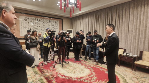 2025年4月29日,驻智利大使牛清报接受媒体集体采访,就中资项目安全、美发起关税战、中智经贸关系、天文合作等近期热点问题答记者问。《信使报》、智利国家电视台、合作社电台等智主流媒体和彭博社、法新社、埃菲社等国际媒体共20余家参加。采访全文如下: