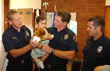 弃婴特莎跟随领养家庭回到消防站看望救命恩人。