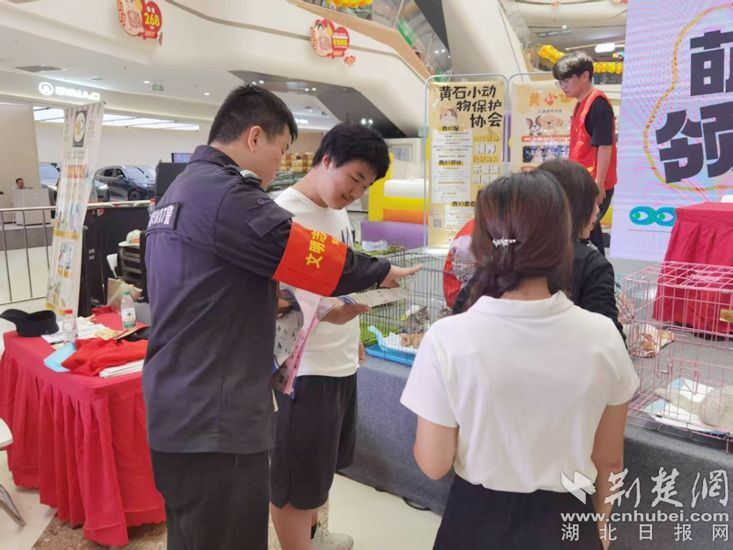 荆楚网(湖北日报网)讯(通讯员 王晓菲)5月5日,黄石市公安局黄石港区分局治安大队联合黄石市小动物保护协会、瑞派宠物医院,在黄石港万达广场组织开展“文明养犬 让爱有家”主题活动,吸引广大市民热情参与。