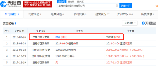 7 月 28 日电 据天眼查提供信息,7 月 26 日,上海哔哩哔哩科技有限公司法定代表人由陈睿变更为郑彬炜,前者为上海哔哩哔哩科技有限公司总经理,后者为上海哔哩哔哩科技有限公司执行董事。