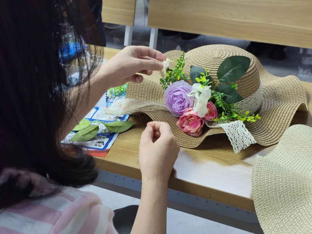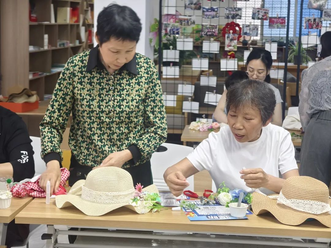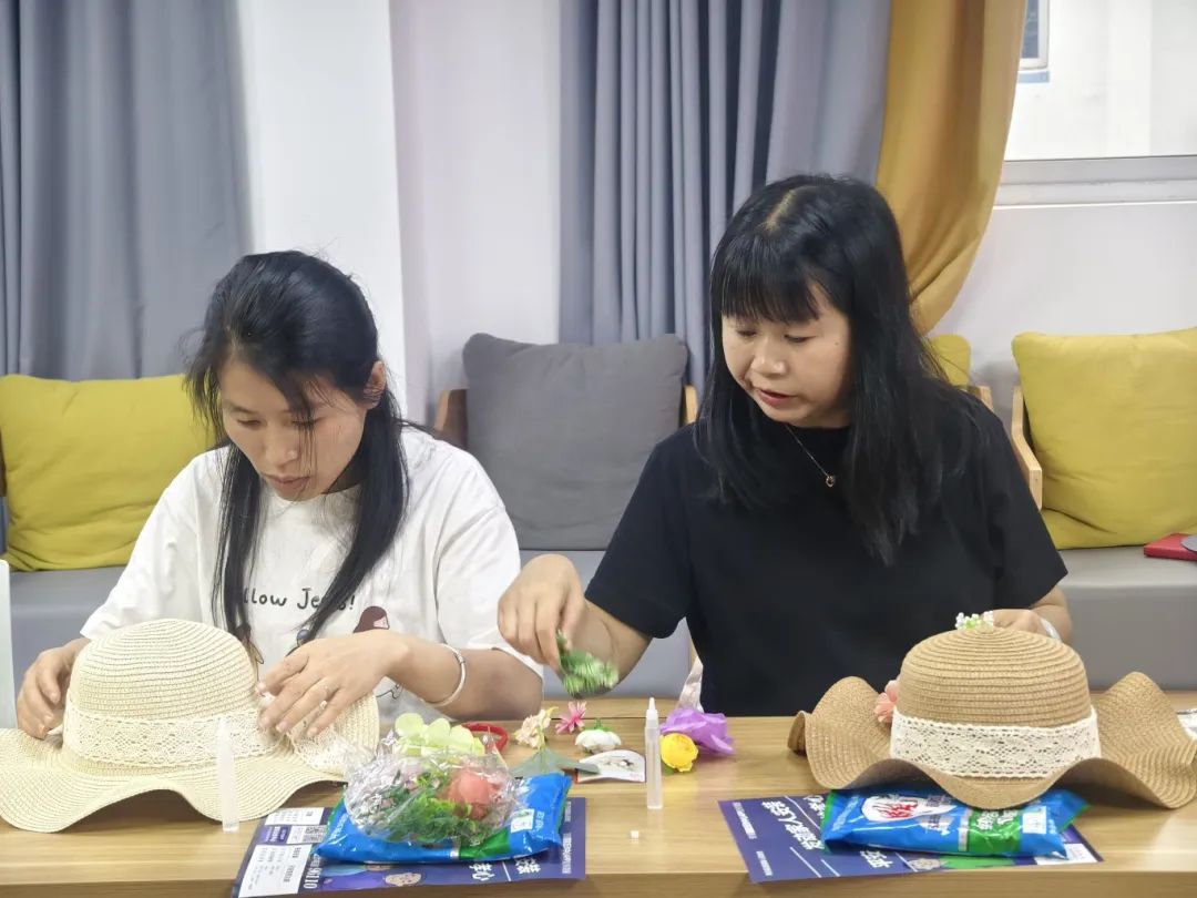 活动现场,社区志愿者为大家详细讲解到制作草帽过程,随后分发制作材料与工具。大家跃跃欲试,制作过程中,志愿者手把手给予指导和帮助,与母亲们亲切交谈。“阿姨,这个蝴蝶结这样系会更立体。”温馨的互动让现场气氛格外活跃融洽,欢声笑语此起彼伏。母亲们充分发挥想象力与创造力,将一顶顶草帽作为创意的载体,用美丽的花朵巧妙搭配,打造专属自己独一无二的“美帽”。