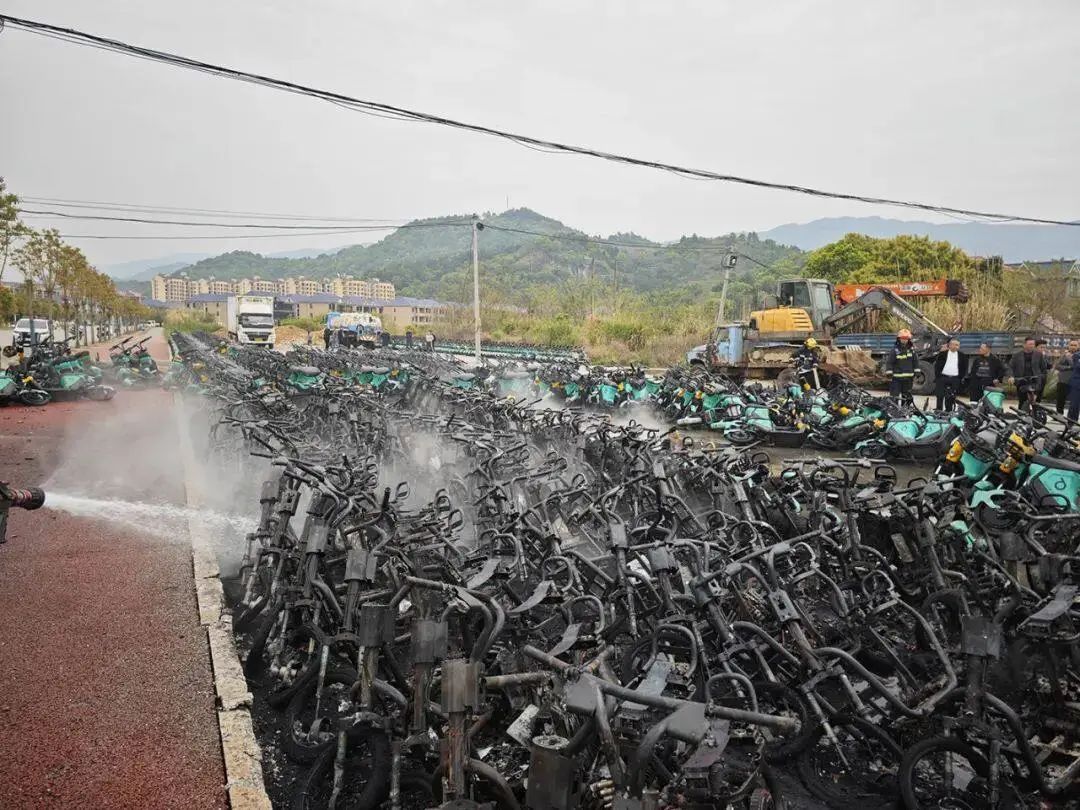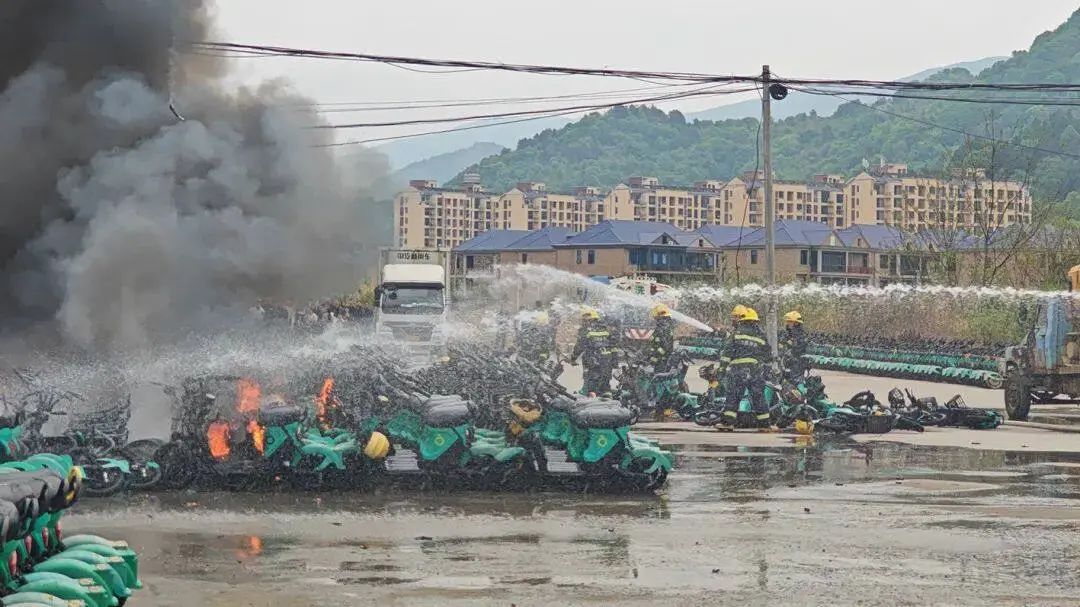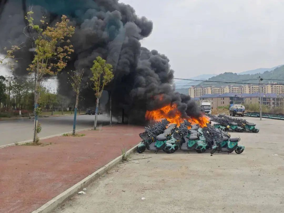 多辆电动自行车正在燃烧