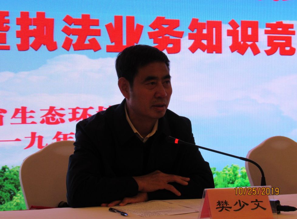 为营造“学业务技能、当岗位标兵、打好攻坚战”的浓厚练兵氛围,推动“全员、全年、全过程”练兵,打造“政治强、业务精、作风硬”的环保执法铁军,按照《2019年陕西省生态环境保护执法大练兵活动实施方案》要求,省厅于2019年10月24日,在西安举办了生态环境保护执法大练兵第二轮环保法律知识和执法业务知识竞赛。省厅赵生山、陈建新两位副巡视员先后主持了竞赛动员和颁奖仪式,厅党组成员、省核安全局局长樊少文出席竞赛活动并分别做动员和总结讲话,省生态环境执法总队总队长胡世军宣读了竞赛规则。
