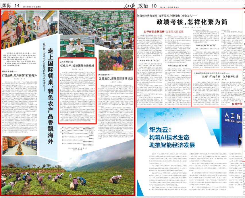 2024年11月27日,《人民日报》10、14版刊发楚雄优化考核、生产报道