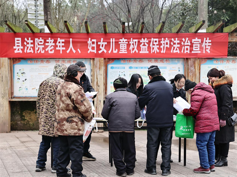 四川新闻网消息 新春来临之际,为持续提高群众的法治观念和法律意识,真正让法治思想融入群众生活之中,满足群众日益增长的法治需求,1月25日,四川省武胜县人民法院速裁团队、刑庭、审管办等部门干警前往汉初广场开展老年人、妇女儿童权益保护,反电诈、反非法集资、禁毒等多主题法治宣传活动。