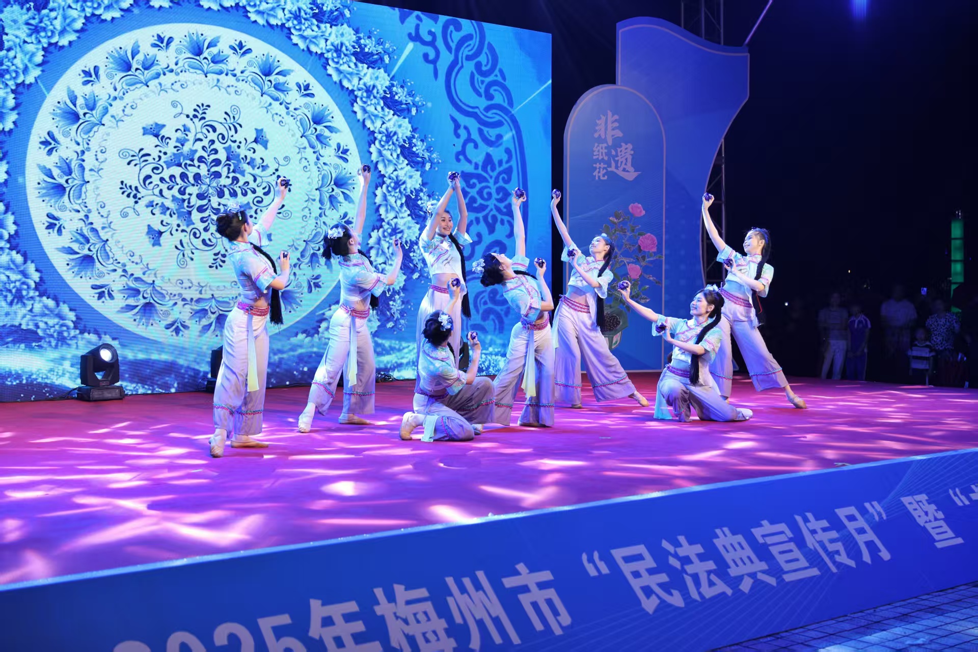 掌上梅州讯 2025年5月是全国第五个“民法典宣传月”。5月27日晚,“与法同行 守护‘梅’好”——2025年梅州市“民法典宣传月”暨“非遗+法治”主题文艺汇演在丰顺县新世纪文化广场举行。梅州市司法局、梅州市烟草专卖局、梅州日报社及丰顺县等相关领导出席活动。