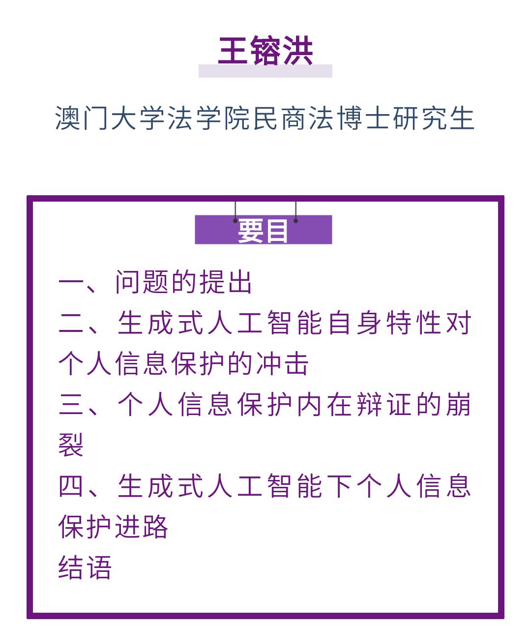 原标题:《王镕洪|生成式人工智能背景下个人信息保护的困境与破解》