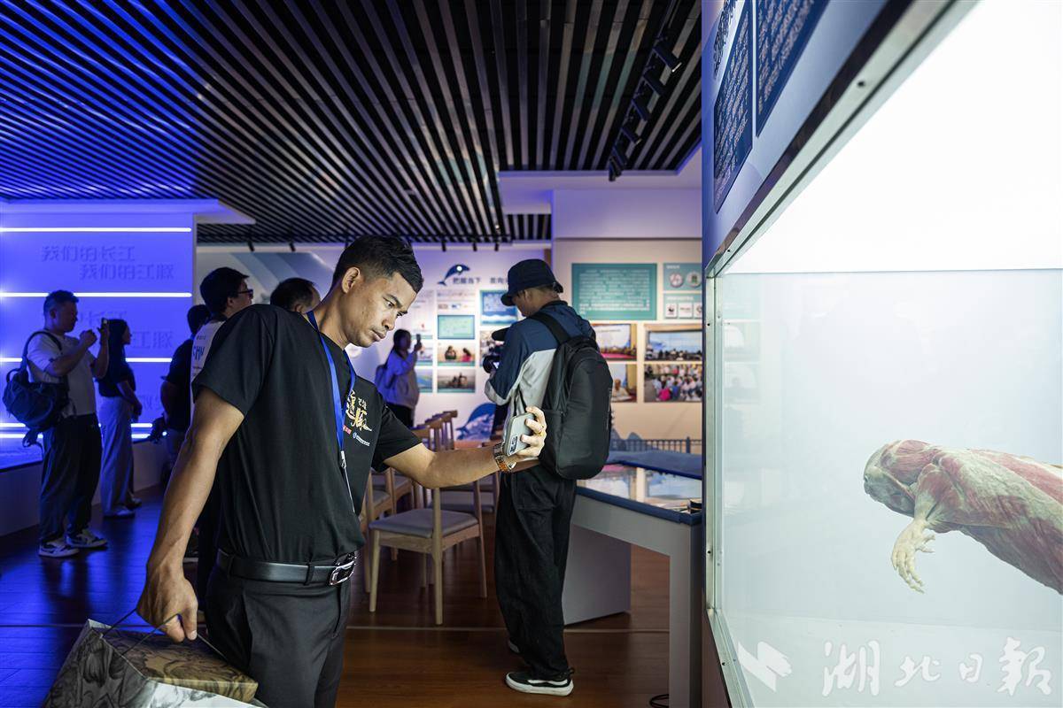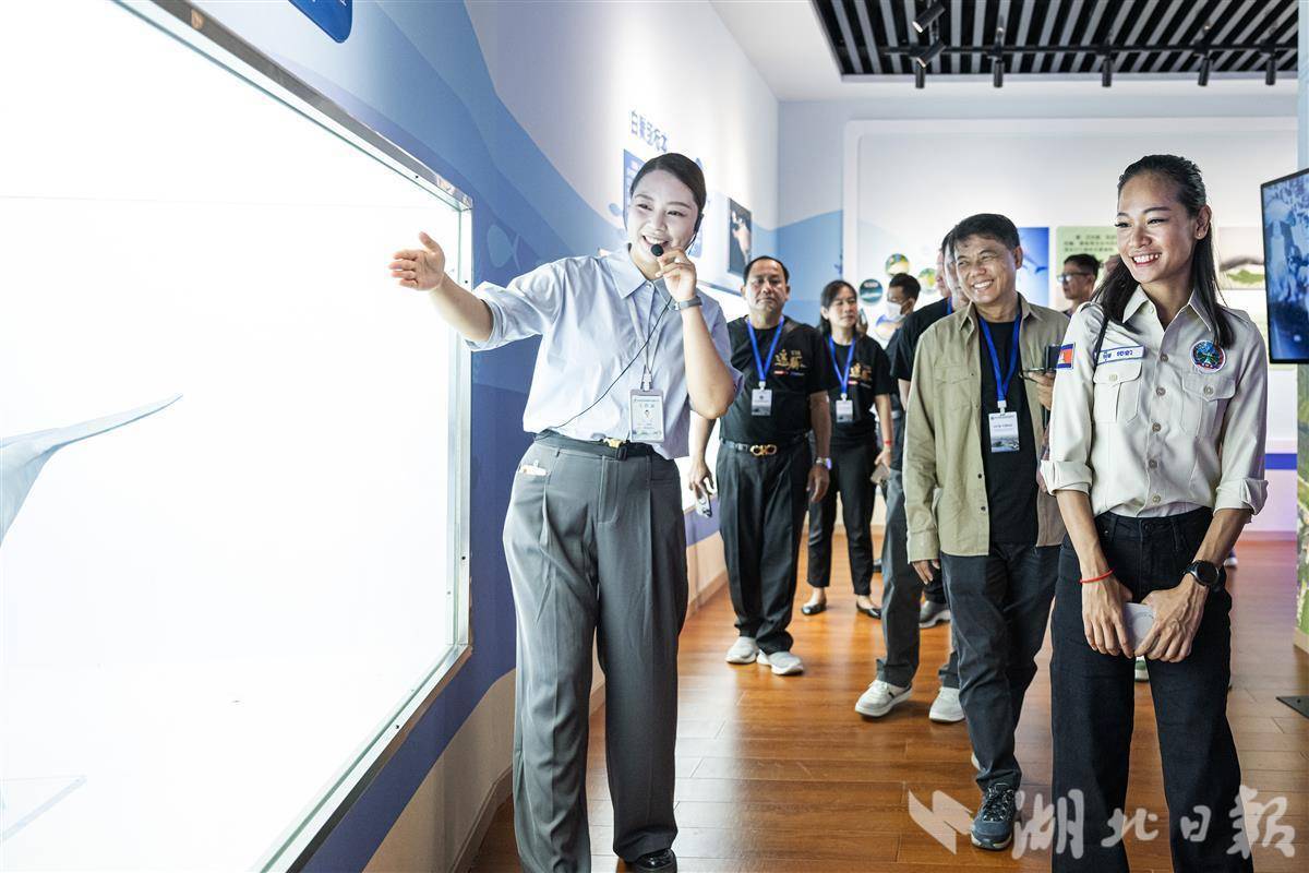 6月5日,来自柬埔寨、印度尼西亚、老挝、越南、泰国等国家的代表和技术官员来到湖北石首的长江天鹅洲白鱀豚国家级自然保护区展馆参观。(湖北日报全媒记者任勇摄)