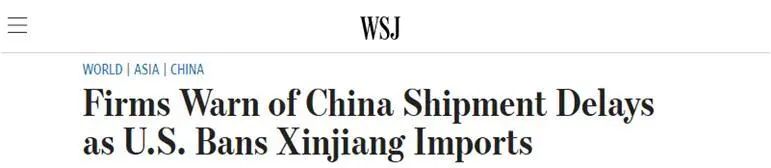 《华尔街日报》:美国禁止进口新疆产品,多家公司警告中国货物运输中断