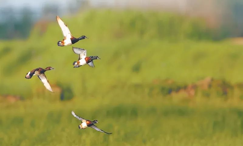 武汉府河湿地,飞翔的青头潜鸭。谭军 摄