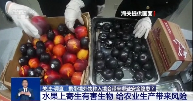 青岛胶东机场海关关员 李淑杰:携带新鲜水果进境,需要经过国家有关行政主管部门审批许可,并具有输出国家或地区官方机构出具的检疫证书,经检疫查验合格后方可入境。我们提醒广大入境旅客,不要随意携带新鲜水果、蔬菜、种子等检疫物进境,共同守护国门生物安全。