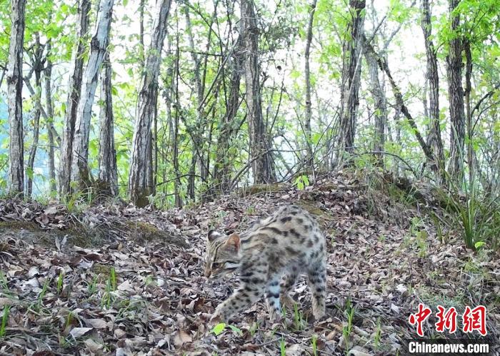 中新网十堰6月10日电(程平 杜登艳 袁孝文 陈波)湖北堵河源国家级自然保护区洪坪管理站工作人员近日整理红外相机监测数据时,惊喜发现一组国家二级保护动物豹猫的清晰影像。这是继林麝、黑熊等珍稀物种后,该保护区生态监测工作取得的又一重要成果。