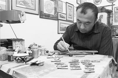 乌兹别克斯坦十分重视保护和传承与丝绸之路相关的历史遗迹和文化传统。图为手工艺人正在绘制丝绸之路题材的微缩画。