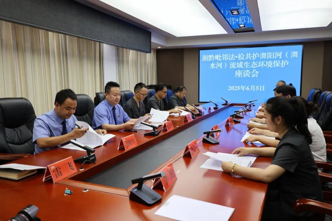 6月5日,碧江法院联合湖南省怀化铁路法院、新晃法院、玉屏检察院、新晃检察院等部门在㵲阳河流域开展“守护母亲河”巡河活动。重点检查入河排污口3处,制止非法垂钓行为2起,采集水样送检2份。巡河结束后,碧江法院联合其他单位共同在㵲阳河畔举行了《㵲阳河(㵲水河)流域生态环境保护司法协作机制》签约仪式,建立“线索移送+联合督办+生态修复”全链条保护模式。