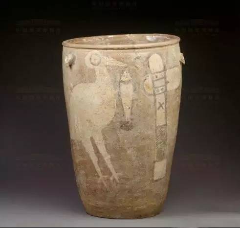 鹳鱼石斧图彩陶缸,1978年出土于河南省临汝县(今汝州市)阎村,新石器时代前期的葬具。为红陶砂质,高47厘米,口径32.7厘米,底径19.5厘米。器腹外壁的一侧就是著名的鹳鱼石斧图。图高37厘米,宽44厘米,约占缸体表面积的一半,画面真实生动、色彩和谐、古朴优美,极富意境,是迄今中国发现最早、面积最大的一幅陶画。收藏于中国国家博物馆。鹳鱼石斧图彩陶缸在2002年被列入中国首批禁止出国(境)展览文物珍贵文物之首。(中国文化报 章穆)