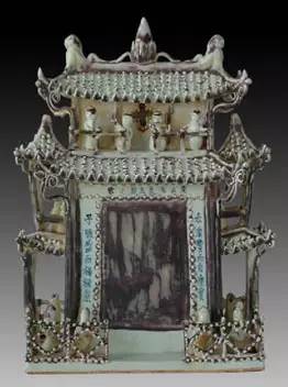 青花釉里红瓷仓,元代楼阁式瓷仓,1974年江西省景德镇出土,现藏于江西省博物馆。这件楼阁式瓷仓,造型别致,虽然是随葬冥器,仍不失为珍贵的工艺品。青花釉里红瓷器,甚为罕见,作为楼阁式瓷仓,并且有明确纪年,迄今仅为孤例。