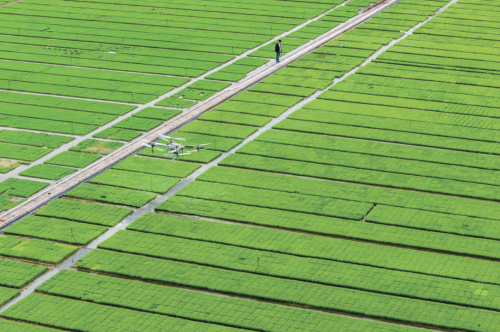 第二,国产智能装备快速崛起。近年来,我国农业机械化水平也有了明显提升,2024年全国农作物耕种收综合机械化率超过75%,较“十三五”末提升4个百分点。国产农机装备不断更新迭代,从耕种到收获逐步迈向智能化、自动化。以植保无人机为例,2024年全国植保无人机的保有量达到25.1万架,作业面积更是高达26.7亿亩次,同比增长近25%。根据中国社会科学院农村发展研究所“乡村振兴综合调查”数据,目前使用无人机从事农业生产的村庄占比60.5%,已经在较大范围内实现了普及。