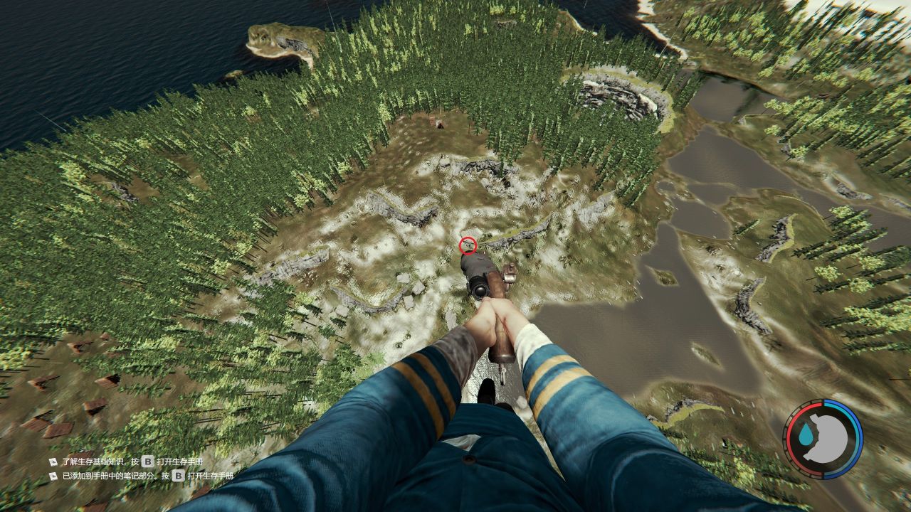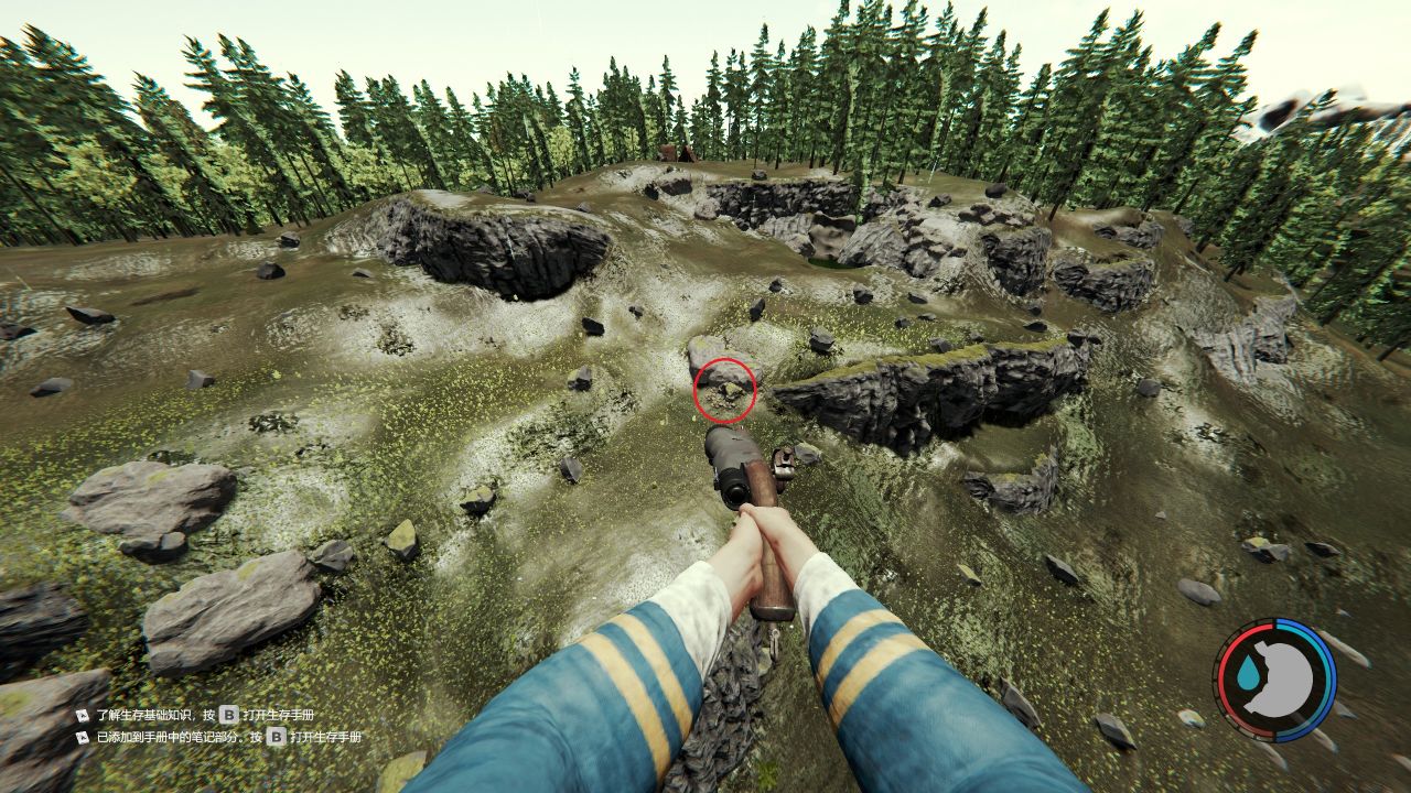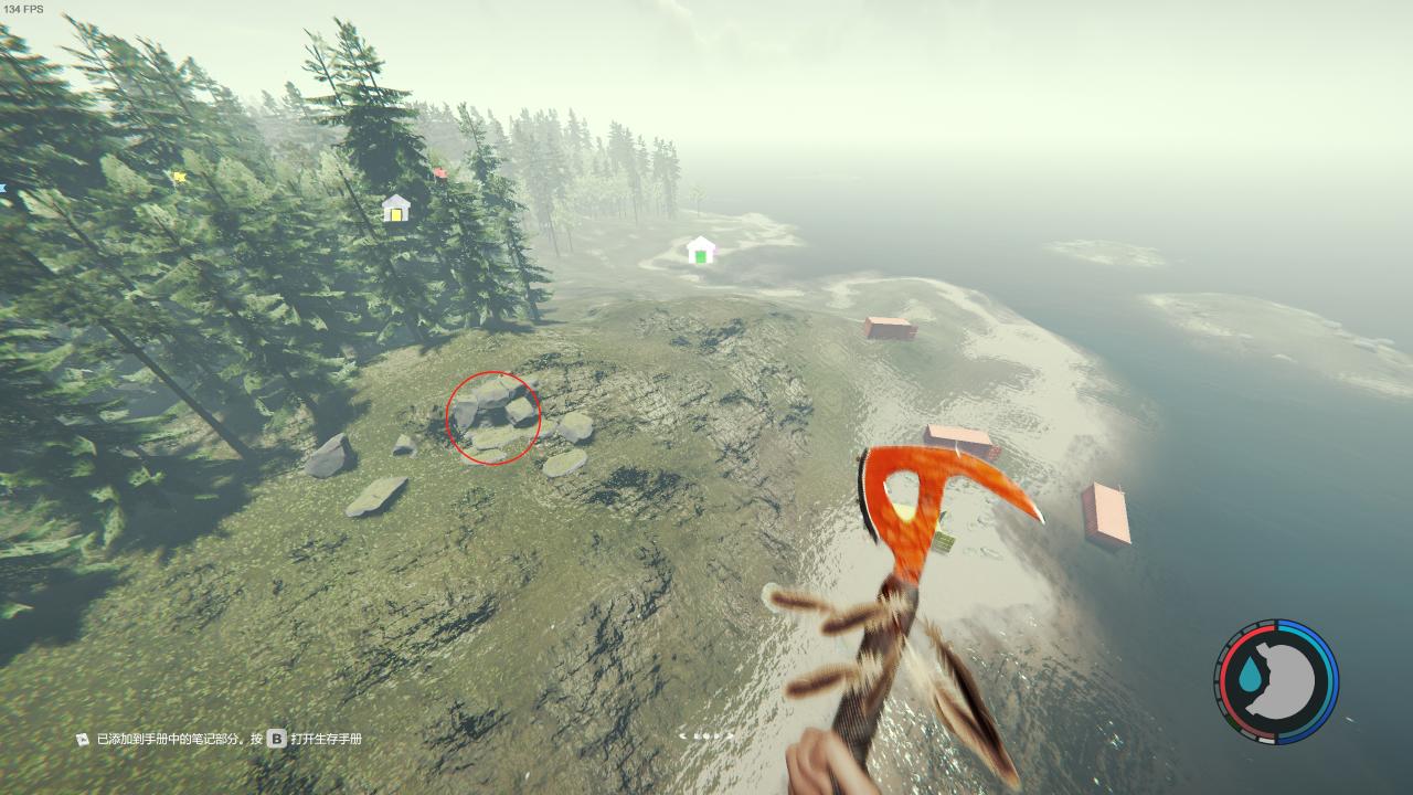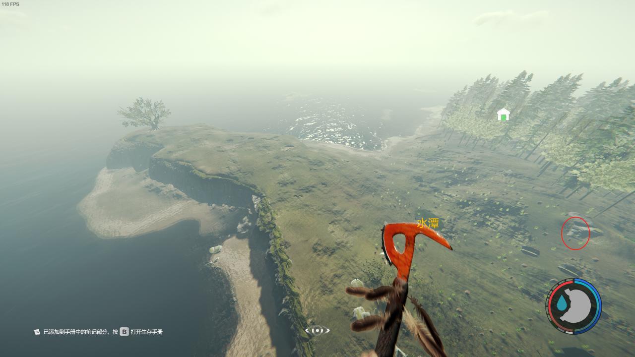 用斧头把自己救下来后可以在旁边的地上找到指南针和地图,对于萌新很有用。