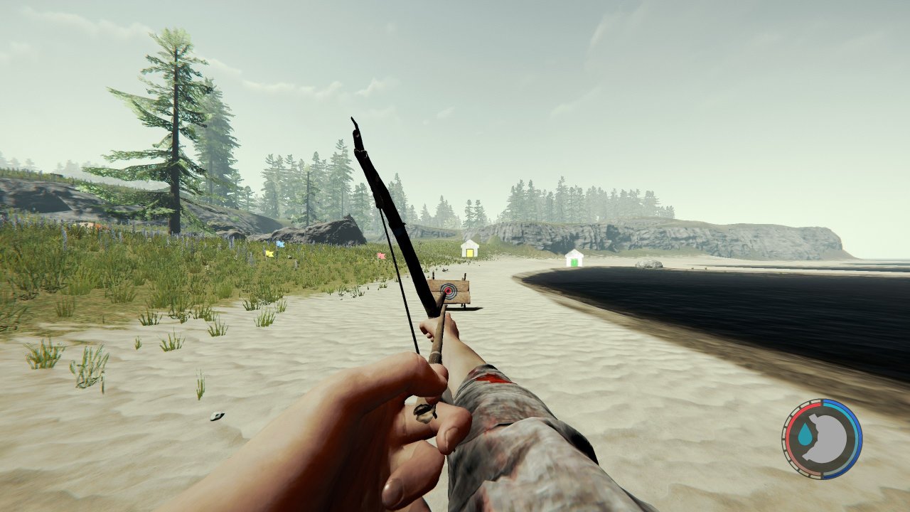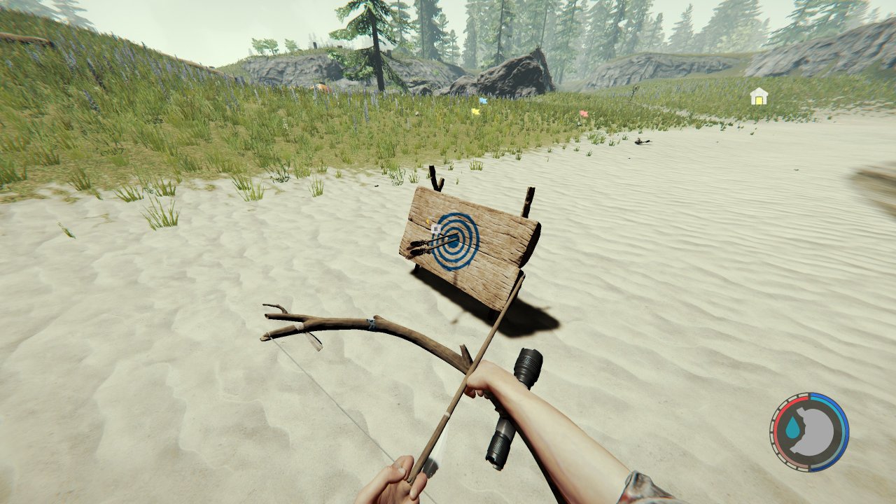 其次是紧致弓和现代弓,现代弓没有准星但伤害高适合老鸟,精致弓适合萌新搭配现代箭也有不俗的伤害。所有的弓箭打头都是一箭秒,所以建议盒友们瞄准点。现代弓就不赘述,精致弓如何瞄准?基本就是伸出来的树枝靠右上角的一小块,如图。