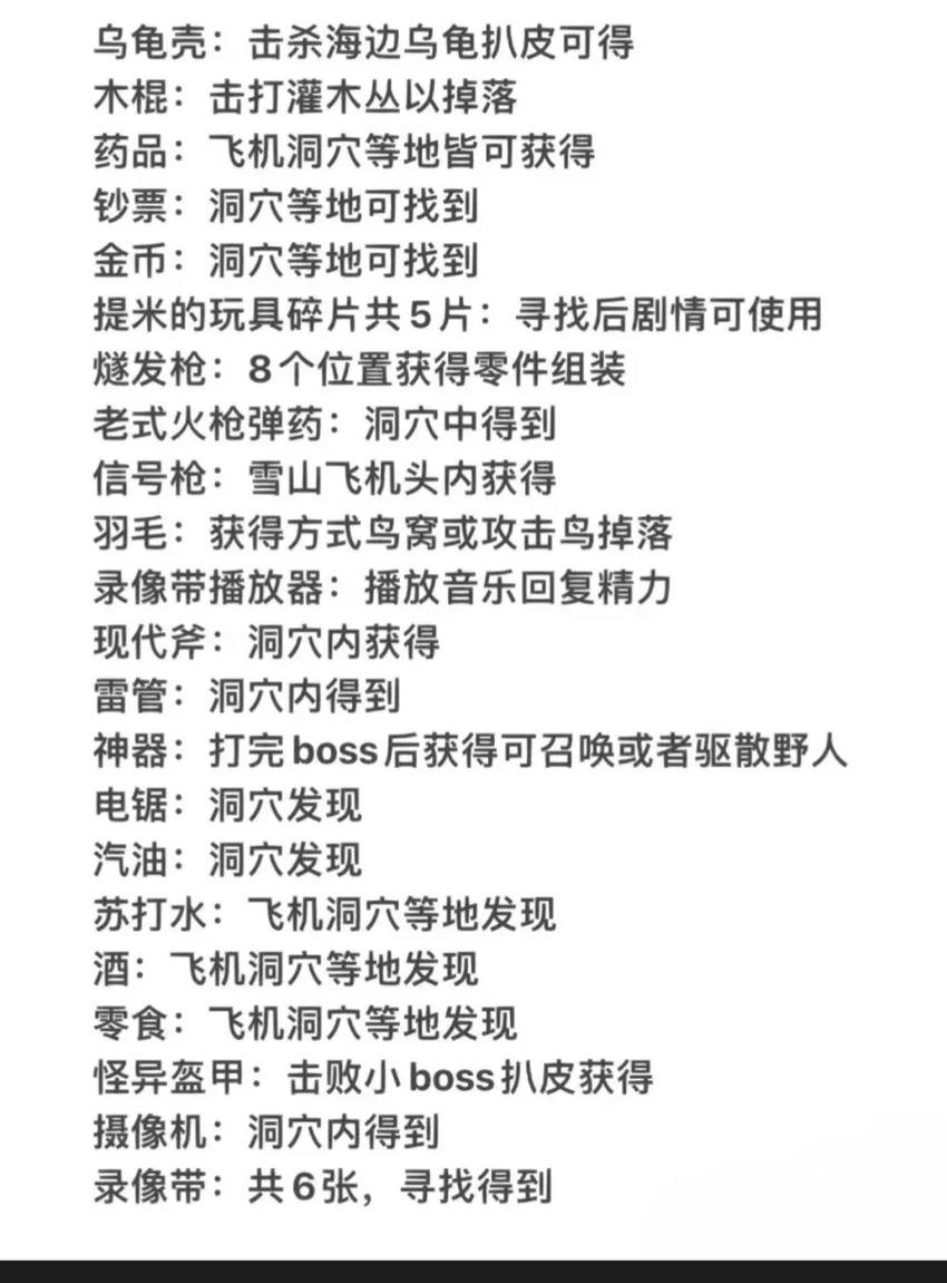 落地后开箱子捡物资,找地方建庇护所,庇护所搭建完毕就可以看我所发的地图捡装备与道具了。想要通关游戏必拿的道具装备为:潜水器,门禁卡,登山镐(登山镐身法好的可不拿)。别的装备建议拿。