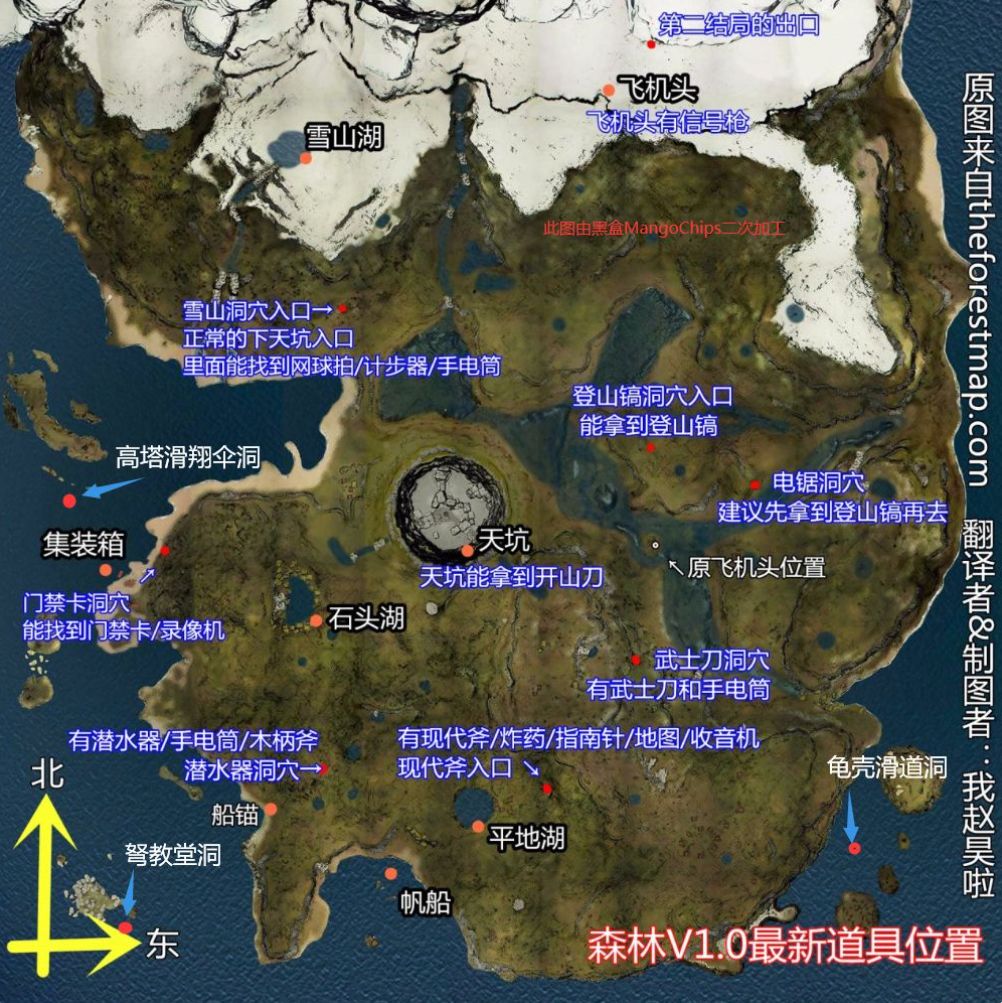 推荐边玩边看地图,有很大帮助。想要更详细的地图可以去这个链接 https://theforestmap.com/