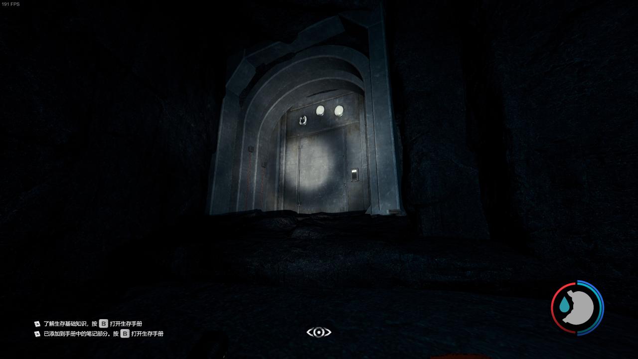 在进入并探索一段之后就可以找到实验室大门,此时需要门禁卡(白卡)进入,大门如下图。