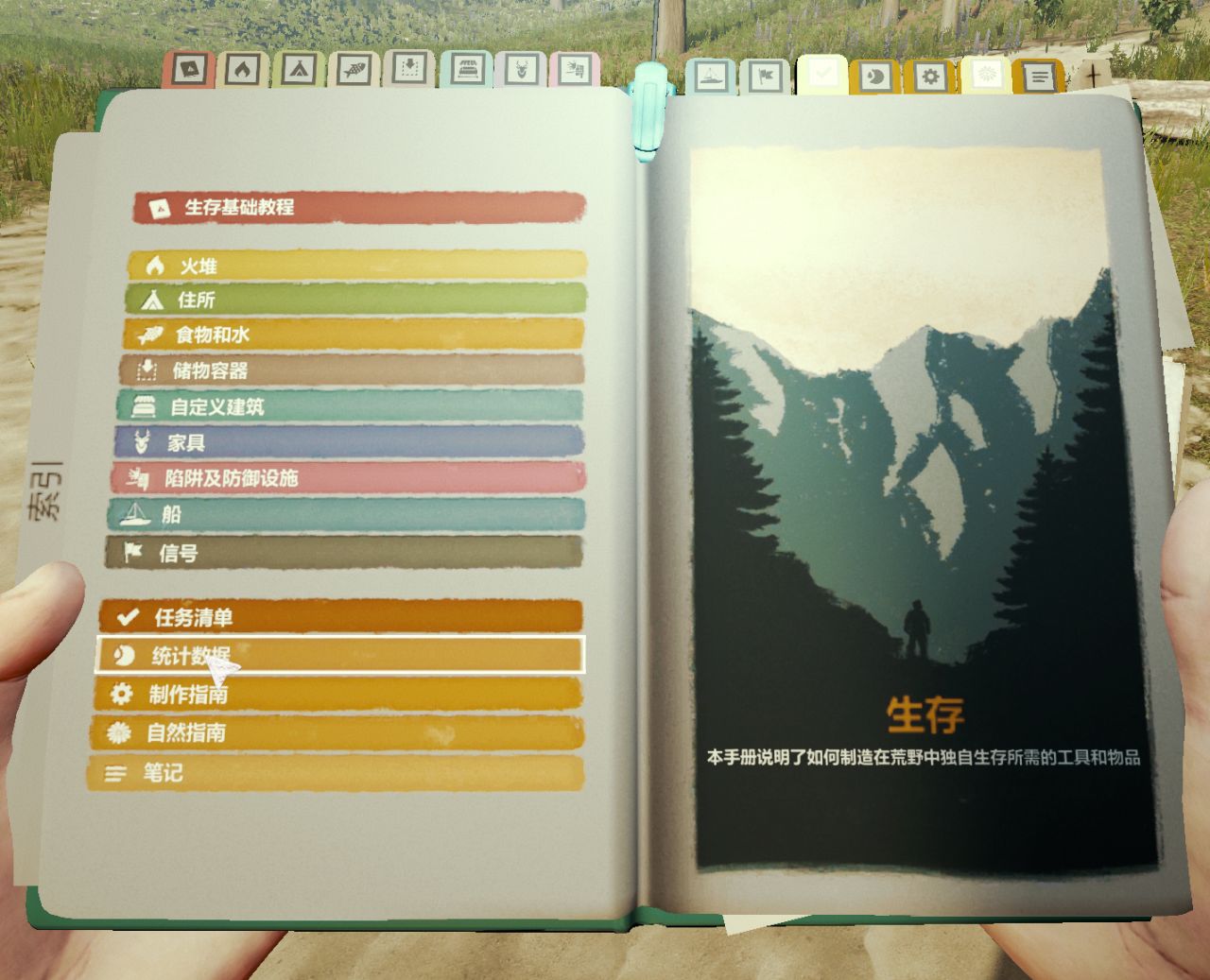 除了这几个基础数值外,还有几个高级属性:抗寒护甲、潜行值、体重、力量值(体力)、运动能力以及神智值。这些属性可以在建造书 中的统计数据查看。