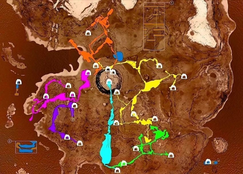 我不推荐萌新在地表时使用游戏内自带的手绘地图,那个描绘的真是一坨,萌新只会越看越迷糊,所以我推荐边玩边使用以下我所发的地图。(如果你喜欢那样的风格且能看懂可以无视)