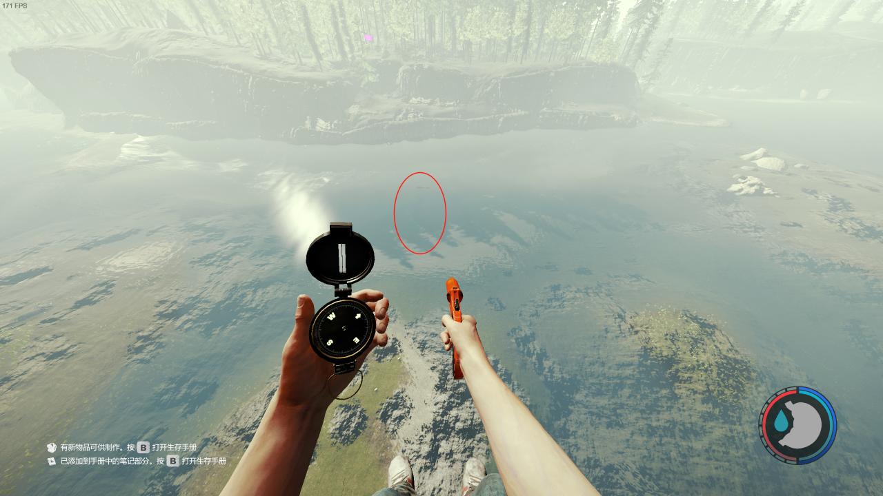 讲一下森林的重生机制,这游戏的单人模式在第一次死亡时会被拖到指南针地图洞,也就是下文我所要讲的地方,再死一次就需要读档了。而多人模式死亡会直接在飞机上重生并且装备会丢在原地。