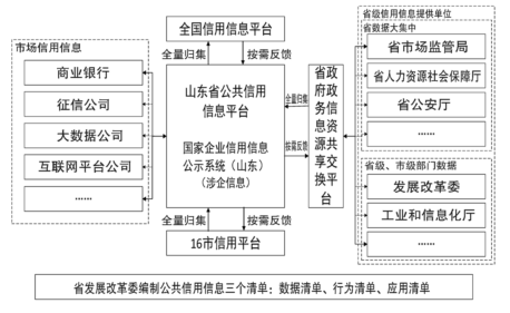 一是借鉴上海自贸区经验做法,起草编制山东省公共信用信息“三清单”(数据清单、行为清单、应用清单),切实提高信用信息归集共享应用的规范性、精准性。二是推广统一社会信用代码制度,全面、及时、准确记录市场主体信用行为,特别是将失信记录建档留痕,做到可查、可核、可溯。三是依托省政府政务信息资源共享交换平台,按照省公共信用信息数据清单要求,向省公共信用信息平台全量报送信用信息;其中,涉企信息同步归集共享至国家企业信用信息公示系统(山东)。四是对信用信息报送规模和质量进行全面摸排,建立通报和末位约谈机制,推动全省公共信用信息“应归尽归”。五是依照法律法规或者协议约定,推动公共信用信息、市场信用信息、企业自愿注册信息等各类信用信息互联共享,丰富信用信息维度。