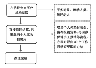 2.推进门诊慢性病省内异地联网即时结算。在进一步扩大异地住院费用直接联网结算覆盖范围的基础上,再简化程序,改革门诊慢性病异地就医个人先垫付资金再后期手工报销流程,办理时限由原来30个工作日变为联网即时办结。对纳入医保支付的高血压、糖尿病等14种(类)门诊慢性病实行省内异地就医联网结算,实现医疗费用即时报销。