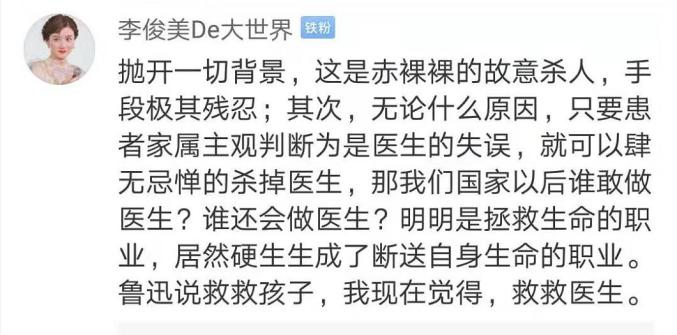 对于伤医我们已出离愤怒,强烈谴责暴行的发生,对杨文医师的不幸离世表达深切地哀悼,对家属表示慰问。