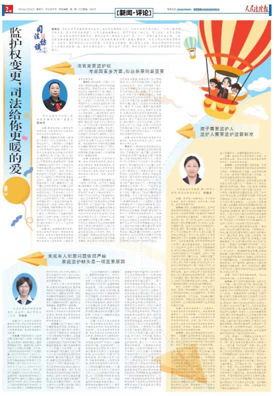记者:就未成年人监护权这一问题,从法学理论上看,您认为目前司法实践存在哪些不足?应如何补充完善?