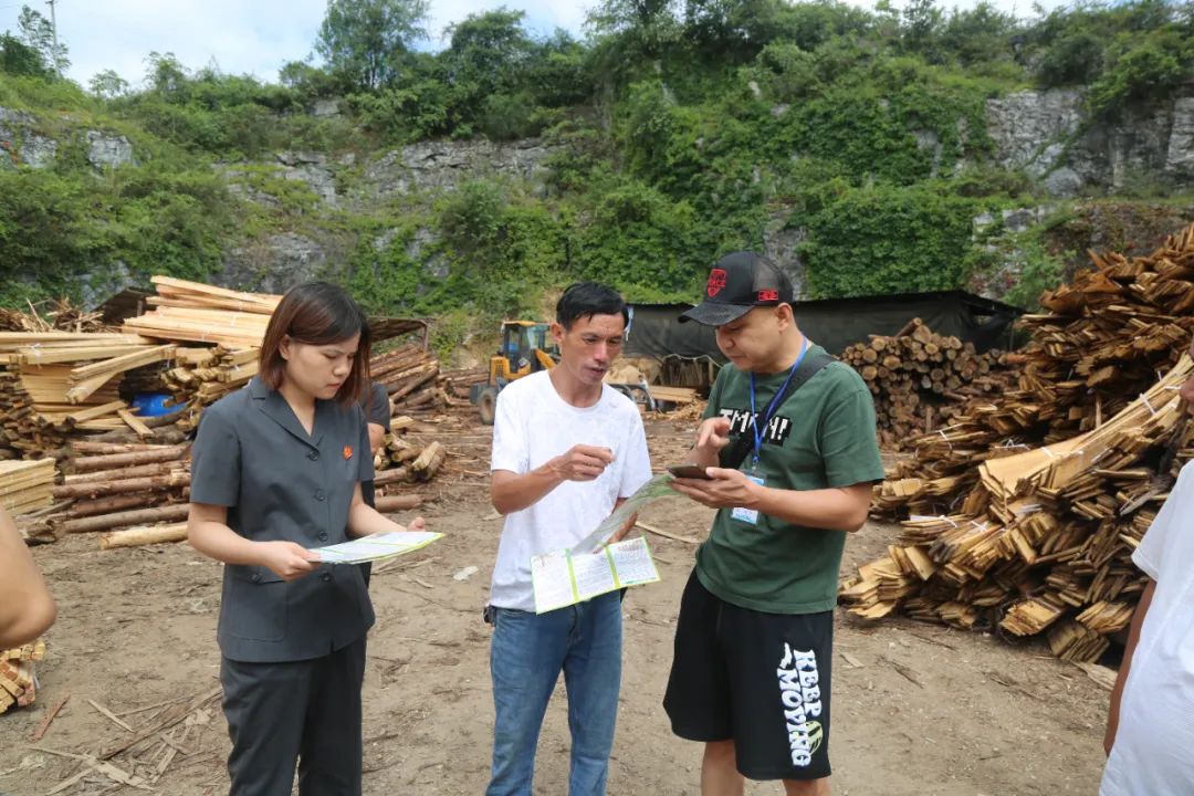 活动当天,平坝区法院联合区林业局前往平坝区内多家木材加工经营企业,开展法治宣传。活动现场,集合区域内多家木材加工经营者,平坝区法院干警和区林业局执法人员共同发放宣传资料,宣传相关国家政策、法律法规。平坝区法院干警结合典型案例,用通俗易懂的语言讲解破坏生态环境的行为应当承担的法律责任,详细介绍了非法收购、运输、盗伐、滥伐林木等违法犯罪行为的处罚种类,入刑情形和条件,并耐心细致解答经营者现场提出的问题。
