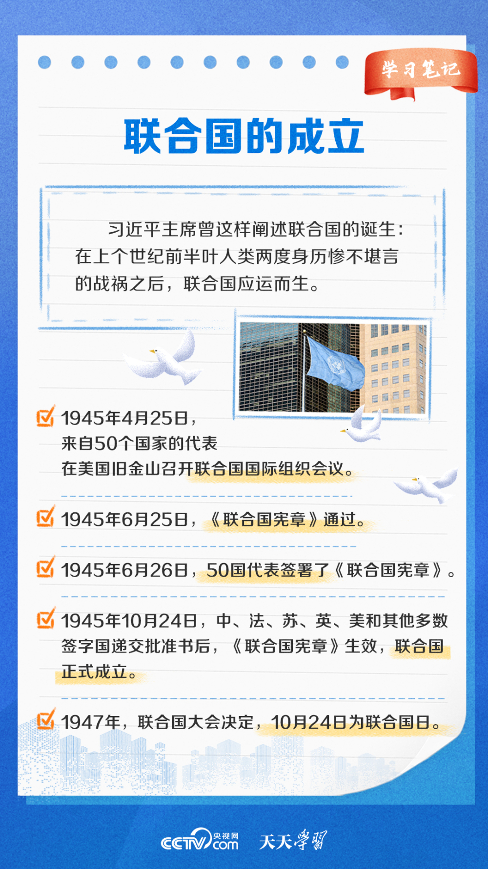 在联合国成立78周年之际,央视网《天天学习》栏目特梳理联合国相关知识点及我国在联合国事业中发挥的重要作用,与您一起学习。