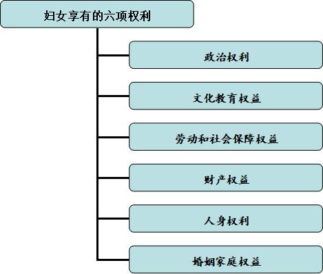妇女与男子享有同等的政治权利:妇女享有与男子平等的选举权和被选举权;妇女有权通过各种途径和形式,管理国家事务,管理国家经济和文化事业,管理社会事务。